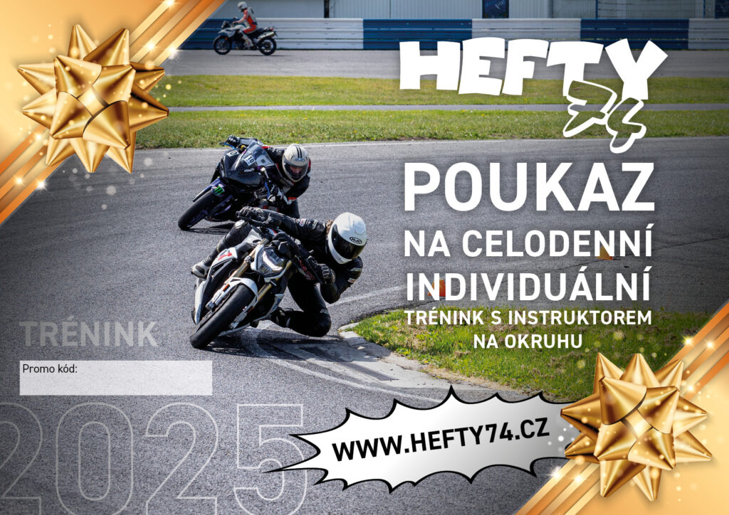 Pořiďte poukaz na motokurz organizovaný týmem Hefty74, který se koná v roce 2025. Tento individuální kurz je ideální pro začátečníky i pokročilé jezdce, kteří chtějí zdokonalit své jízdní dovednosti a naučit se jezdit bezpečně.